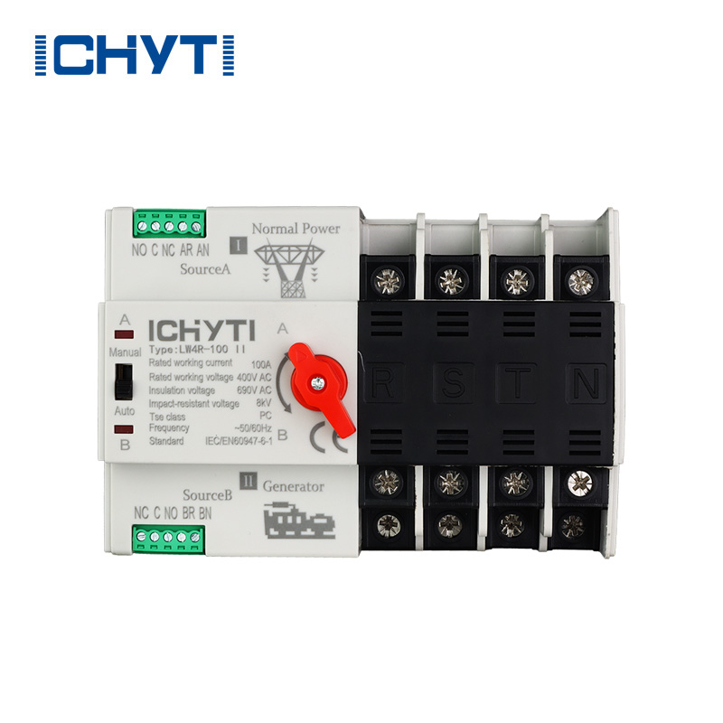 Comutatorul de transfer automat ICHYTI 100amp din China Factory este ideal pentru sistemele de alimentare de urgență cu 400V și 100A AC la 50 sau 60Hz. Designul său compact, funcționalitatea de transfer fiabilă, instalarea și întreținerea ușoare și durata lungă de viață îl fac o alegere populară. Comutatorul de transfer automat de 100 amperi este potrivit pentru diverse aplicații în care alimentarea continuă cu energie este esențială și poate fi acționat atât electric, cât și manual. Comutatorul automat de transfer de 100 amperi din seria LW2R este în conformitate cu cerințele IEC60947-6-1 pentru aparatele de comutare și dispozitivele de control de joasă tensiune.