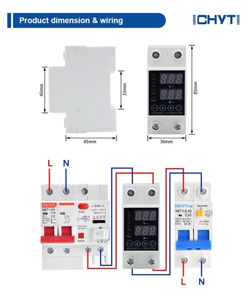 Furnizorii din China ICHYTI Protector digital durabil de tensiune 2 ani garanție are următoarele caracteristici principale: atunci când există supratensiune, subtensiune sau supracurent în circuit, protectorul poate întrerupe rapid sursa de alimentare, protejând eficient echipamentul electric de deteriorare; În același timp, când tensiunea circuitului revine la normal, protectorul digital de tensiune se poate reconecta automat la sursa de alimentare.